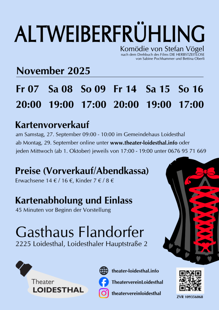 persönlich am 27. September im Gemeindehaus Loidesthal oder online ab 29. September unter www.theater-loidesthal.info